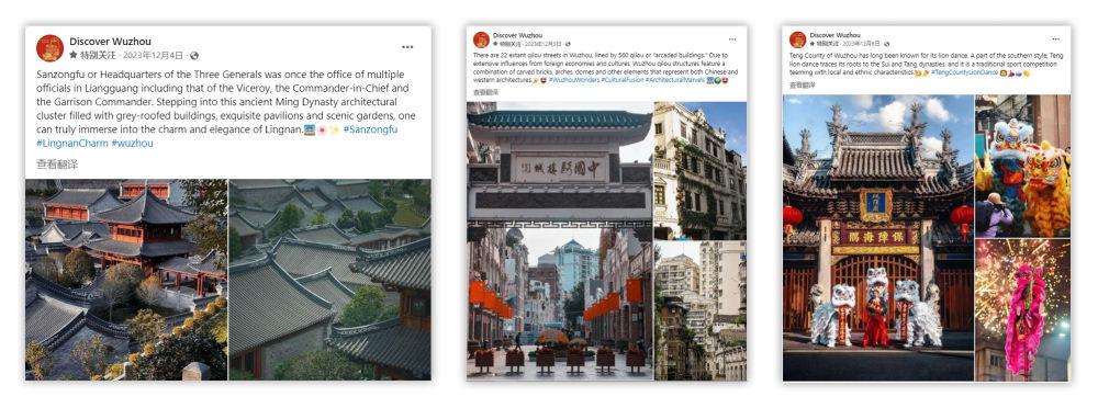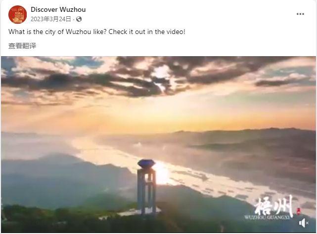 “Discover Wuzhou”海外社交媒體賬號矩陣于2023年3月24日上線,首條帖文發布梧州城市形象片《東融門戶 潮涌梧州》,圍繞“梧州全面對接融入粵港澳大灣區”主題,向海外受眾展示梧州在先行融入粵港澳大灣區,打造廣西東融樞紐門戶城市和珠江—西江經濟帶區域性中心城市所取得的成就以及當地美食美景。