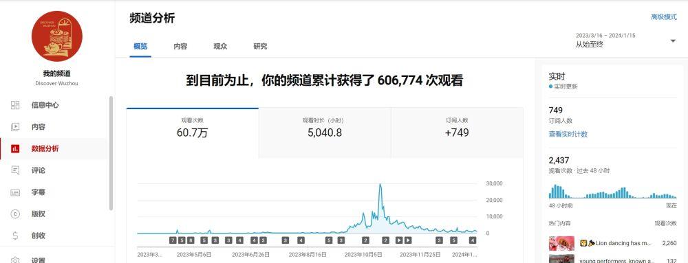 新華社客戶端南寧1月22日電 日前,“Discover Wuzhou”(發現梧州)在Facebook(臉書)、X(原Twitter推特)、YouTube(優兔)等海外社交媒體平臺的賬號總粉絲量突破10萬。自2023年3月賬號開通以來,截至目前總發帖量400多條,主頁總曝光量近2300萬人次,總互動量約5.4萬人次。