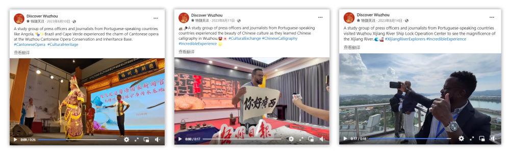 “Discover Wuzhou”圍繞梧州國際交流活動,及時發布相關資訊,展示梧州市與國外城市開展友好交往、舉辦國際性活動等情況。其中,葡語國家新聞官員與記者研修班一行到訪梧州引起海外網友廣泛關注,進一步提升梧州的國際知名度。