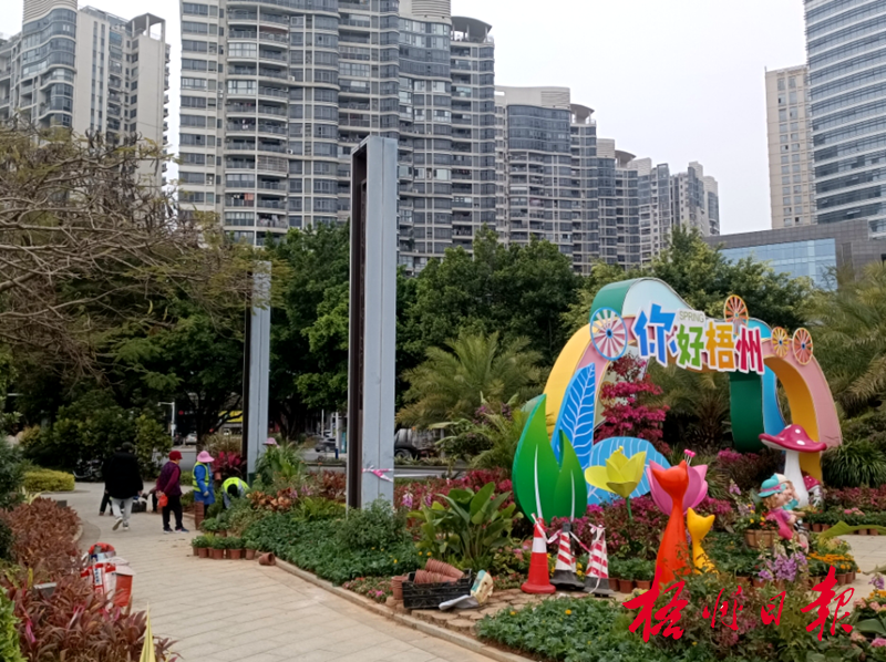 近日,園林綠化部門組織工人在西堤公園一些入口處和活動空地布置新的造型,營造喜慶的氣氛,準備迎接龍年春節的到來。