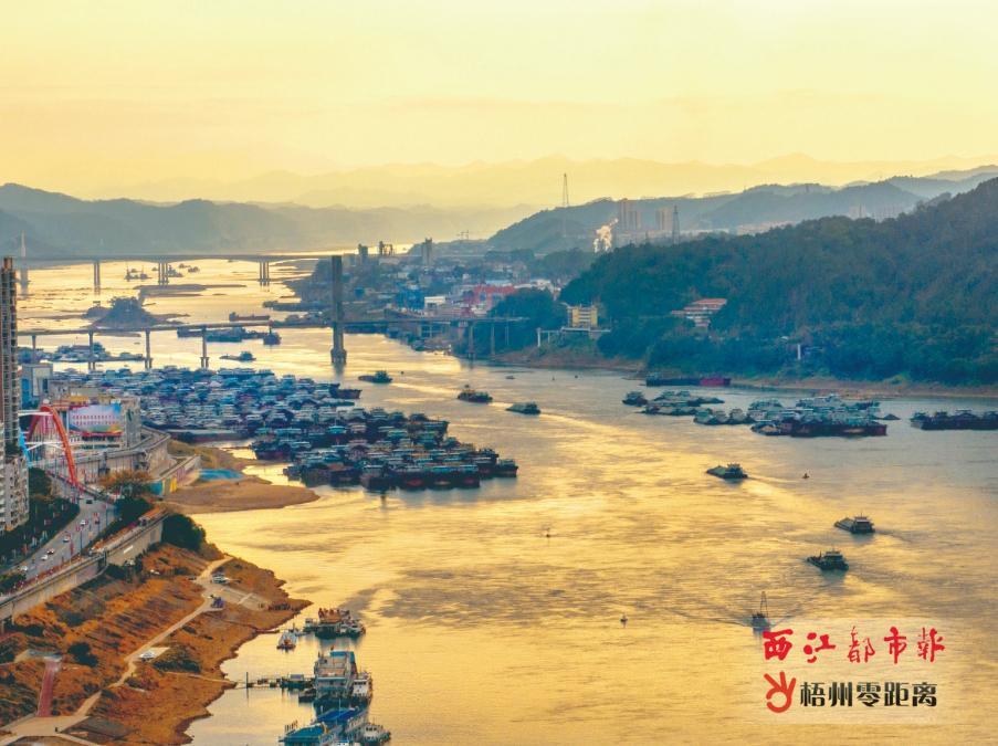 2月16日,在西江航運干線廣西梧州市區河段,裝運物資的貨運船舶往返穿梭。