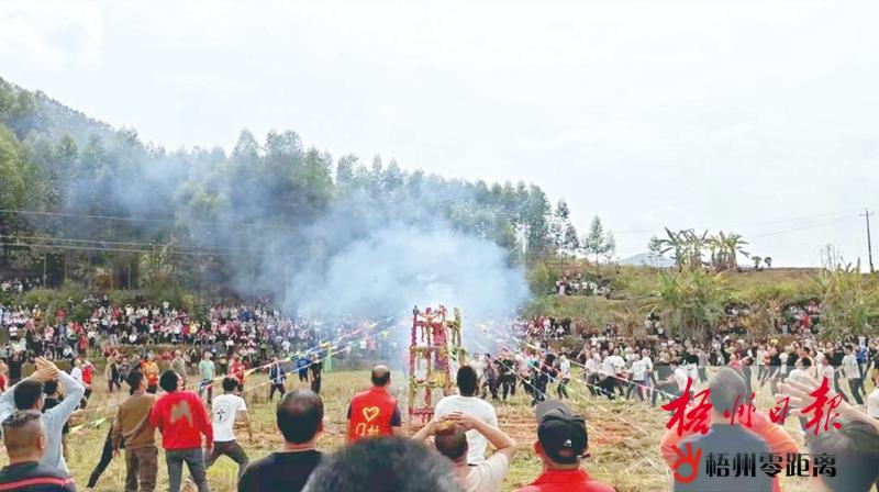 糯垌鎮古蘭村開展春節搶花炮活動。