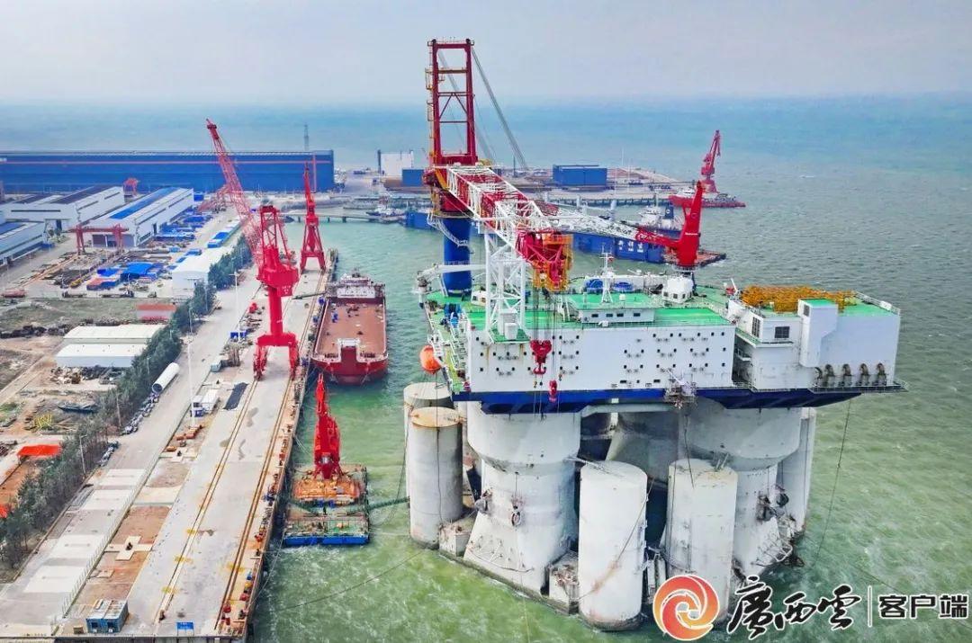 近日,在中國船舶集團廣西造船有限公司,工人們正加緊修造海上鉆井平臺,確保訂單如期交付。廣西日報-廣西云客戶端記者 周軍 攝