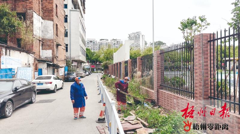 2月23日,在工廠路小學(xué)西側(cè)巷道,環(huán)衛(wèi)工人正在清除路旁的雜物。 近期相關(guān)施工單位組織工人拆除工廠路小學(xué)周邊的施工圍擋,環(huán)衛(wèi)工人陸續(xù)清掃沿路的雜物和垃圾,交警也設(shè)置了禁停護(hù)欄,讓學(xué)生們開學(xué)有更好的出行和學(xué)習(xí)環(huán)境。 梧州日報(bào)記者 李鴻榮 攝