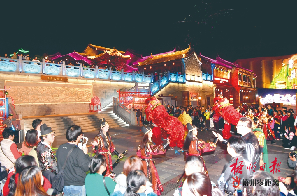 3月11日,梧州明朝兩廣總督府內熱鬧非凡,市民游客正在觀看表演。