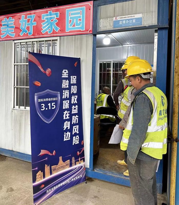 岑溪支行向建筑工人普及金融消保知識。 該行岑溪支行員工放棄節假日休息,走進代發薪單位向該公司建筑工人普及金融消費者八項權利、防范電信網絡詐騙、個人信息保護、珍視個人征信等金融消保知識,幫助消費者正確認識金融產品和服務,了解自身合法權益,提高識別防范保險銷售誤導、網絡平臺誘導借貨、虛假違法廣告的能力。到場職工表示受益匪淺,對該行履行社會責任、服務實體企業的宣教活動表示感謝。