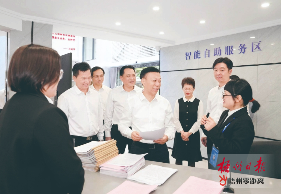 3月26日,市委書記蔣連生到市公共法律服務(wù)中心調(diào)研公共法律服務(wù)、法律援助、公證工作情況。梧州日報記者 楊揚(yáng) 攝