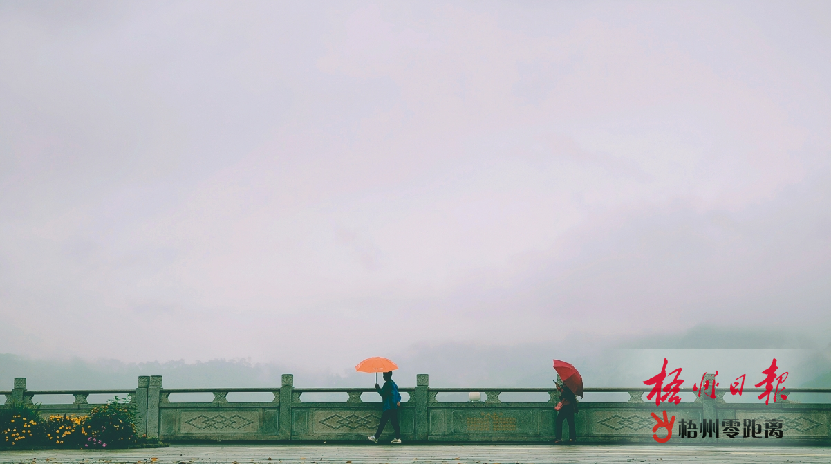 4月6日,市民打著雨傘行經(jīng)西堤公園,眺望南岸群山。 受到冷空氣南下影響,清明節(jié)假期期間我市持續(xù)降雨,南岸群山在雨霧之中顯得朦朦朧朧,遠(yuǎn)遠(yuǎn)觀看另有一番畫意。梧州日報(bào)記者 李鴻榮 攝