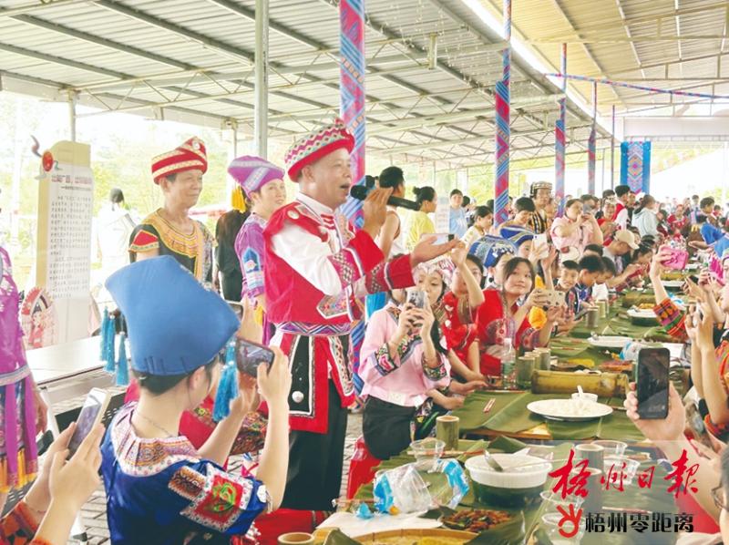 長桌宴上,孩子們一邊聽著梧州本土山歌,一邊品嘗舌尖上的特色美食。 除署名外本組圖片由記者覃競儀攝