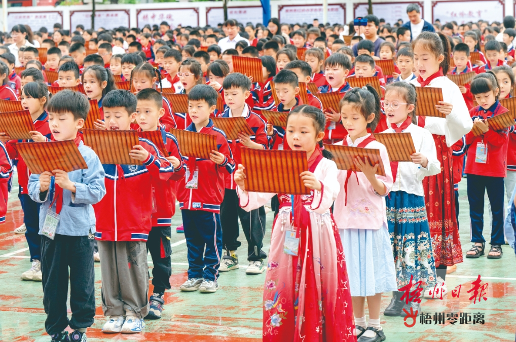 4月23日,梧州市紅嶺小學的學生在誦讀古文。