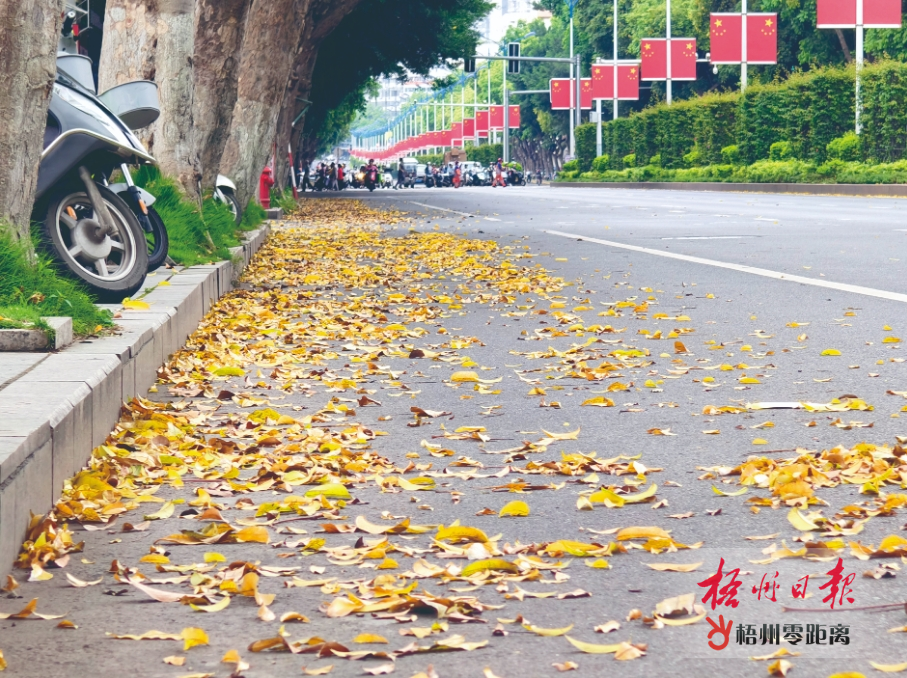 近段時(shí)間我市風(fēng)雨天氣頻繁,新興一路、二路的行道樹被吹落不少樹葉,黃色的落葉散落在人行道和機(jī)動(dòng)車道上,構(gòu)成一幅美麗的畫面。