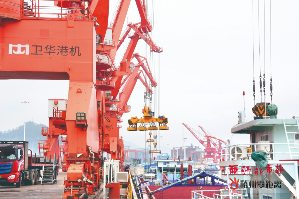 5月8日,梧州港藤縣港區赤水圩作業區三期(翅冀鋼鐵配套專用碼頭項目)一片繁忙景象。