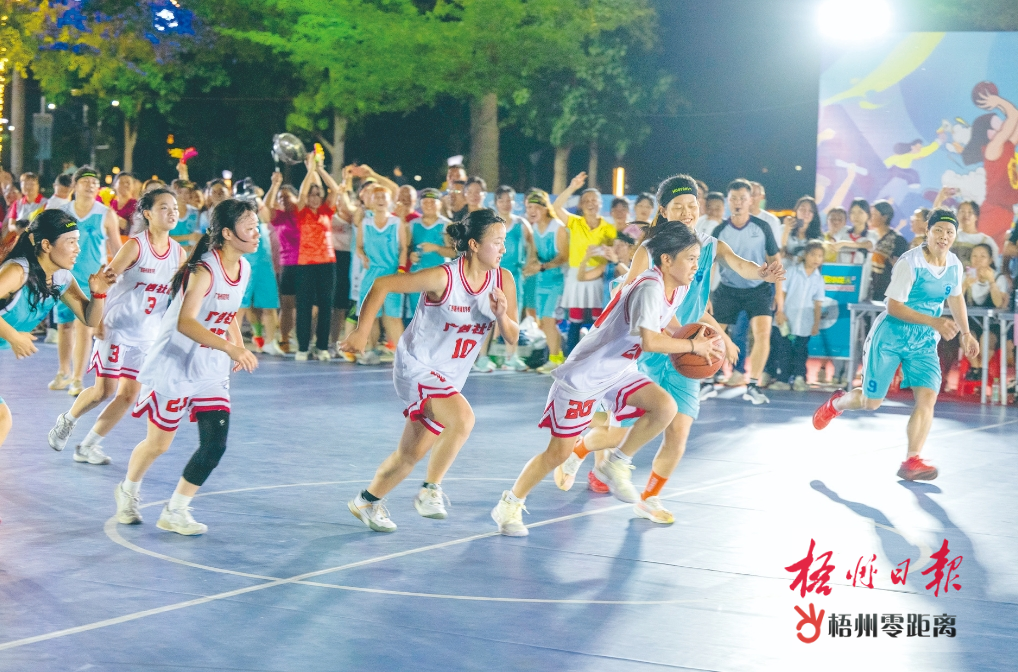 5月10日晚,在蒼海展示中心,龍圩區(qū)歡樂鄉(xiāng)村女籃鎮(zhèn)級(jí)賽激戰(zhàn)正酣。