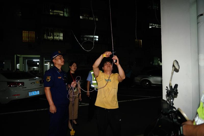 檢查發現,該小區存在飛線充電現象,檢查組立即開展“上門入戶”排查和宣傳教育引導。逐一向違規飛線充電的業主進行日常消防安全科普教育,指出飛線充電的嚴重危害,同時,通過電動車火災案例短視頻開展警示教育,指導業主現場整改。針對無法找到飛線充電的業主,檢查組對飛線和電插排進行現場剪線處理。