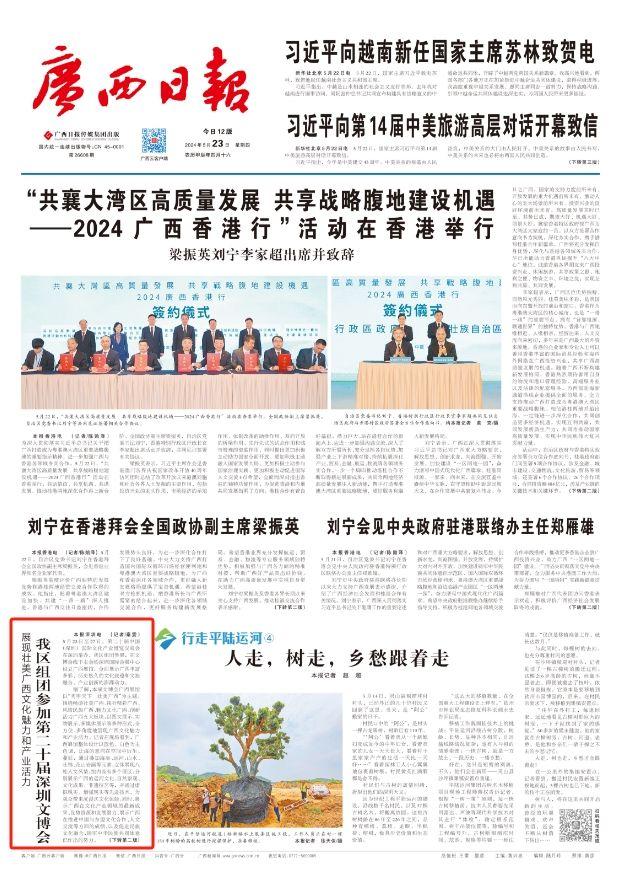 5月23日至27日,第二十屆中國(深圳)國際文化產業博覽交易會在深圳舉辦,我區組團參展,在文博會線下主會場深圳國際會展中心設立廣西展館,全面展示廣西豐富多彩、歷史悠久的文化底蘊和文旅融合、產業創新的澎湃動力。