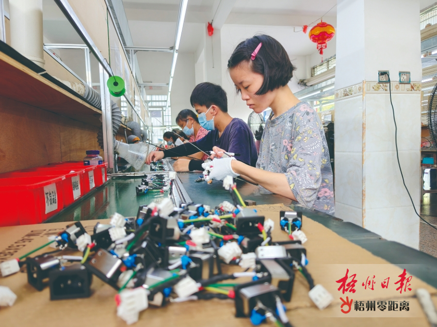 7月12日,岑溪市糯垌鎮綠云村一家電子廠內,村民正在生產配件。近年來,該村通過建章立制,培育良好鄉風民風,吸引客商來村投資開辦電子加工廠,幫助村民就近就業增收。梧州日報記者 李鴻榮 攝