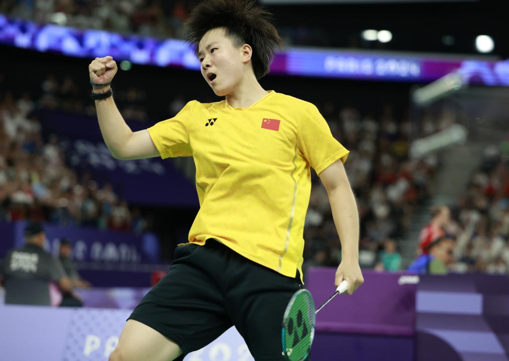 7月30日,何冰嬌在比賽中慶祝得分。新華社記者 任正來 攝