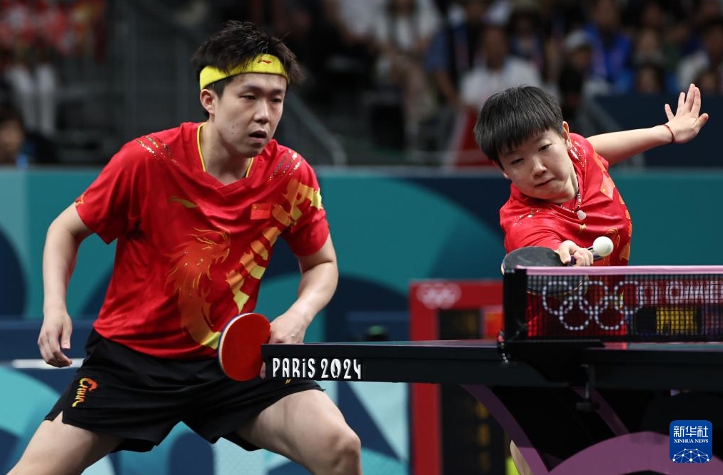 7月30日,王楚欽/孫穎莎(右)在比賽中。新華社記者 王東震 攝