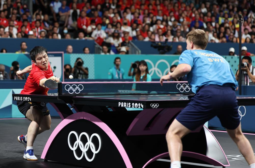 “小胖”樊振東也迎來人生高光。在乒乓球男單決賽中,他以4:1逆轉戰勝瑞典選手莫雷高德,沒讓此前擊敗王楚欽的這匹“黑馬”一黑到底,自己更是首奪奧運男單金牌,成為包攬世界杯、世乒賽、奧運會單打冠軍的大滿貫選手。