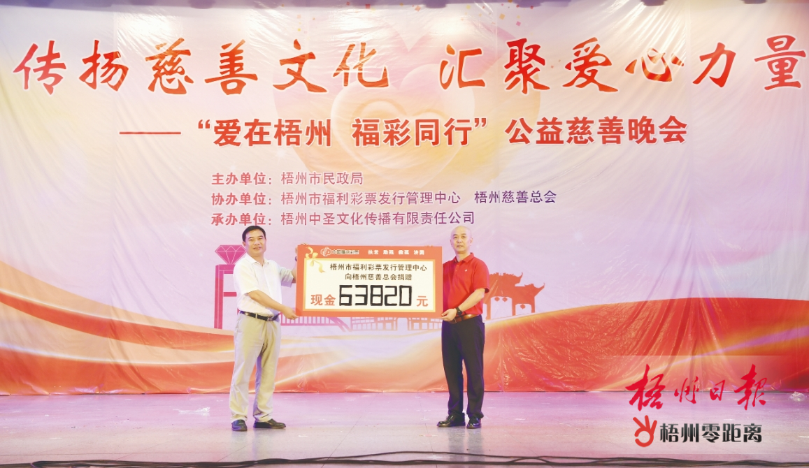 8月30日晚,梧州市福利彩票發行管理中心向梧州慈善總會捐贈63820元。梧州日報記者 李鴻榮 攝