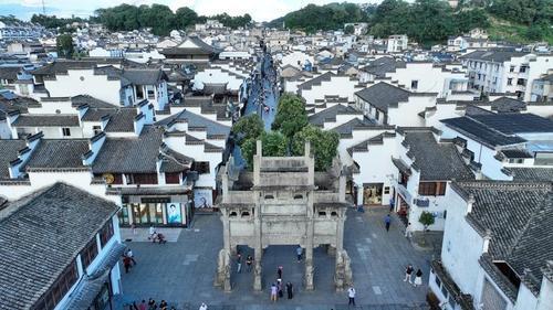 徽州古城內的“八腳牌坊”(無人機照片)。新華社發