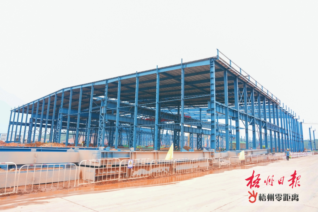 近日,位于梧州臨港經濟區內的廣西智慧鑫源新材料科技有限公司年產50萬噸高端鋁合金智能化產業項目廠房施工現場繁忙。 據了解,該項目以再生鋁為原材料,生產包裝材料、3C產品、新能源、船用鋁合金金板帶、騎車用鋁合金板帶等高端鋁合金板帶產品,目前已進入設備安裝階段,力爭今年年底建成投產。梧州日報記者 楊揚 攝