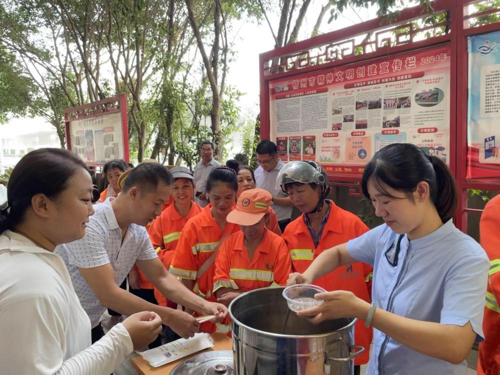 圖為給環衛工人派發綠豆粥