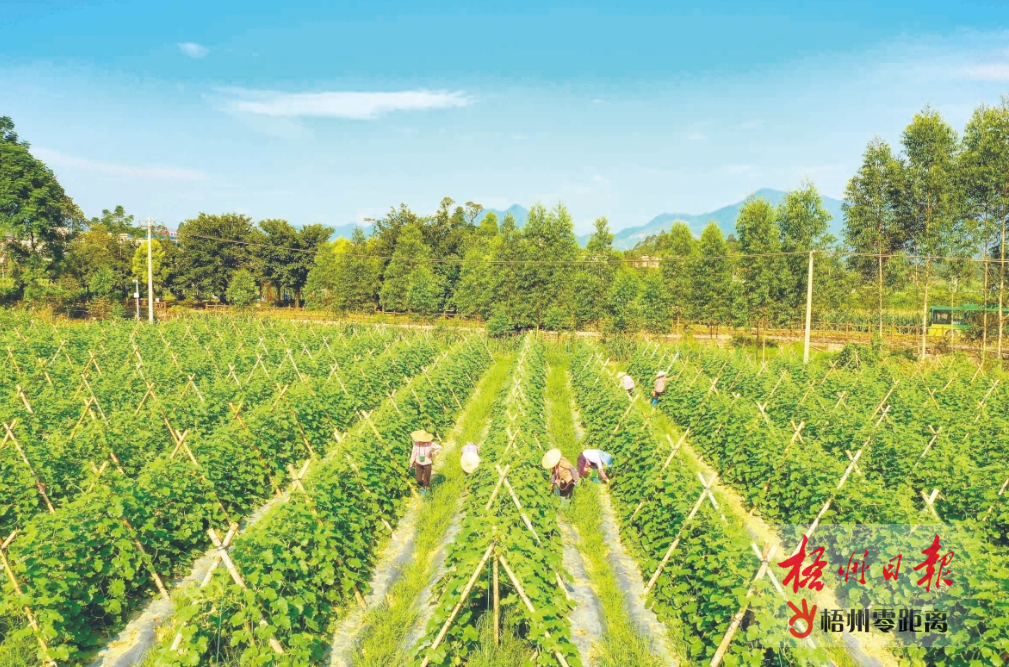 9月20日,在蒙山縣文圩鎮屯治村蔬菜種植示范基地,菜農正在對甜瓜進行精心護理。 前段時間,雨水偏多,影響了甜瓜的正常生長。大雨過后,菜農抓緊時間對種植的甜瓜進行除草松根、培土施肥,扶正瓜苗,搭架保花保果,充分利用科學栽培技術,確保甜瓜增產豐收。江永錄 攝