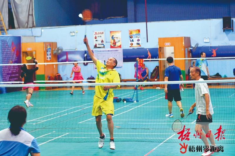 市區羽毛球館聚集了一批老年羽毛球運動愛好者。梧州日報記者 李鴻榮 攝