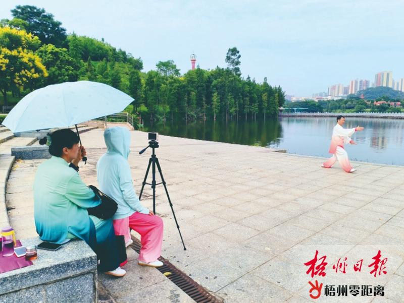研習太極拳的老人,專門讓伙伴拍下自己的練習身姿,好在抖音上進行展示。 崔桂光 攝