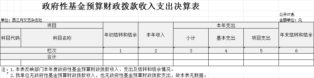 2023年單位決算報表(此部分另附表格,詳見《附件:西江月文藝雜志社2023年度單位決算公開表》)