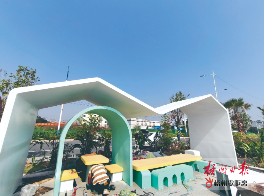 近日,施工單位在西堤公園西堤路延長線范圍修建新的休息區,進一步完善公園步道周圍設施,便利市民群眾。