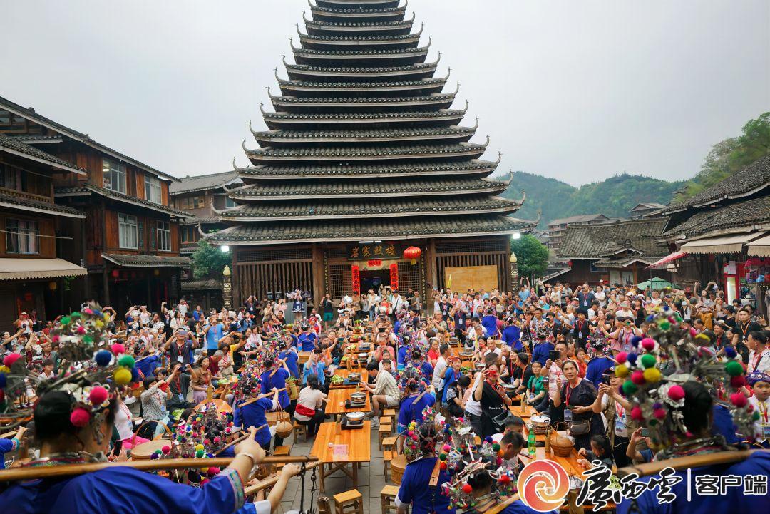 侗族鼓樓坪前,通常是“侗族百家宴”的宴客之地。熱心網友供圖