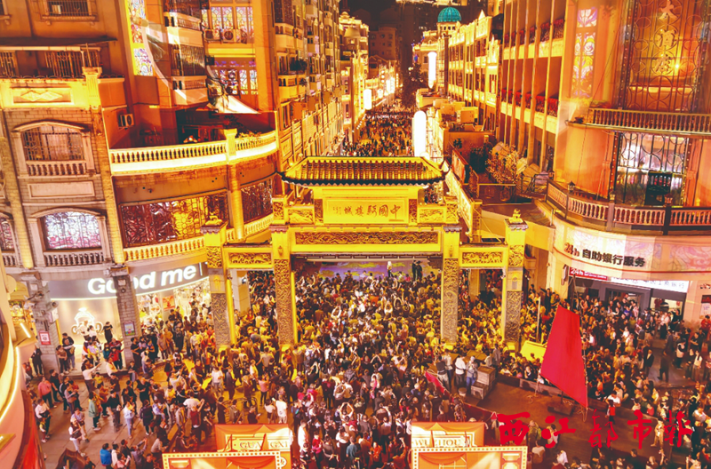 梧州騎樓城開街儀式現(xiàn)場人山人海,燈光璀璨