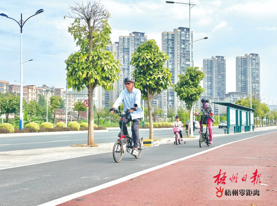 11月10日,市民在長洲區(qū)六旺大道的綠道上騎行。