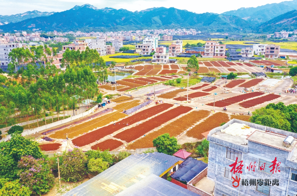 近日,藤縣古龍鎮的八角曬場上曬滿了大紅八角。