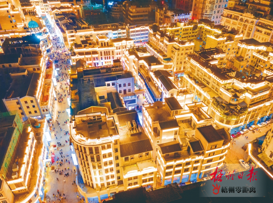 11月12日,騎樓城燈光璀璨,嶄新的形象吸引眾多游客前往游玩。梧州日報記者 何鎏 攝