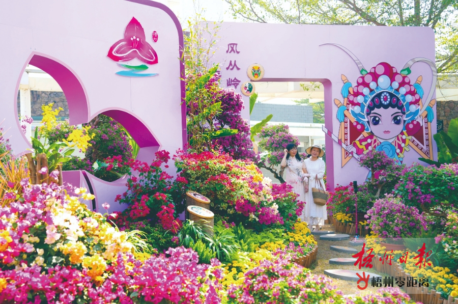 第二十二屆梧州市寶巾花展正在蒼海公園舉行,11月13日,游客們在獨具梧州特色的展位前拍照留影,感受花團錦簇帶來的愉悅。梧州日報