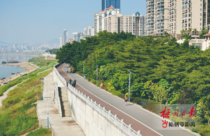 11月15日,人們在西堤公園步道上散步。 近年來,我市大力推進城市公園建設,截至目前,西堤公園已修建沿江步道超過10千米,每天都有不少群眾到江邊散步健身。梧州日報