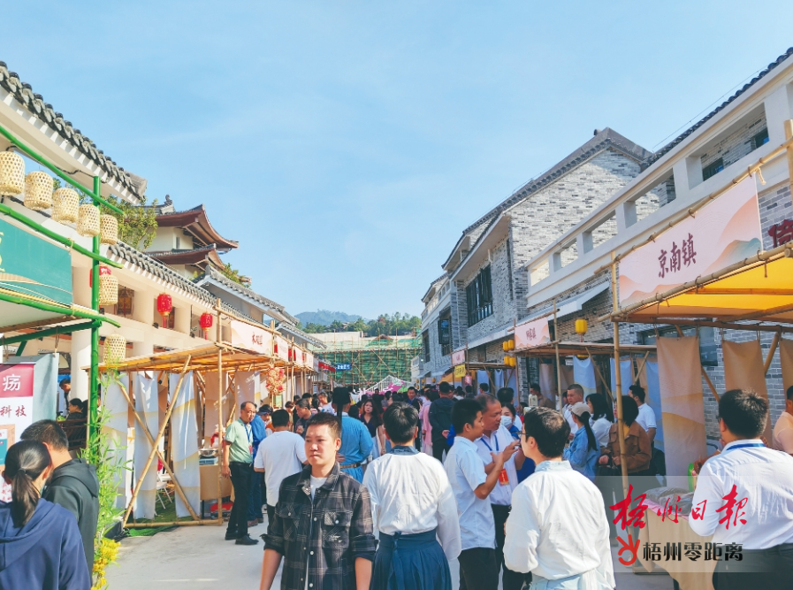 近日,游客在六堡小鎮內游覽國潮市集,了解六堡茶文化,選購地方特產。 岑梓梅 攝
