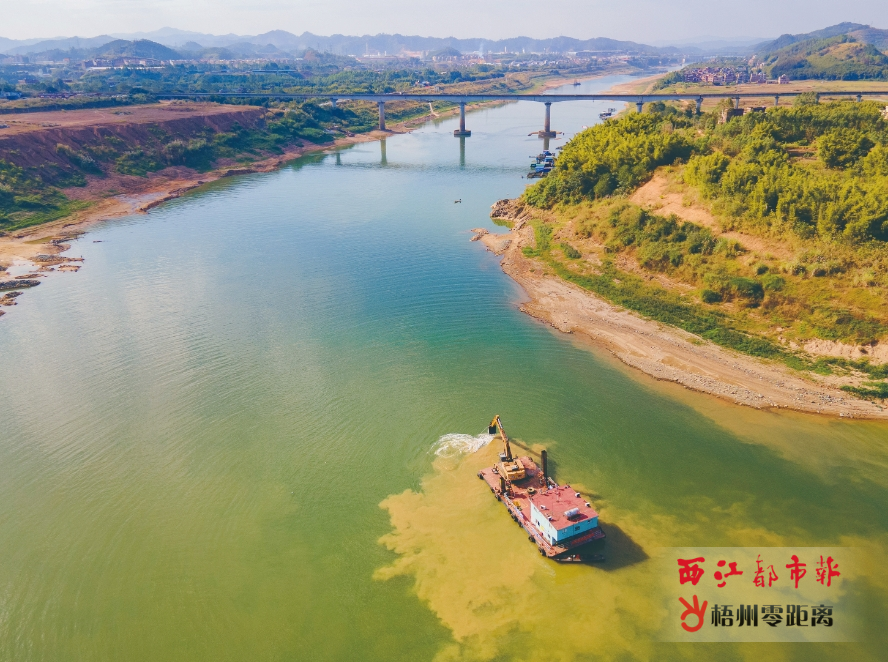 11月30日,在梧州市桂江旺坡村段,工程機械對河床進行疏浚。 近段時間,有關部門抓住江河水位較低時機,有計劃組織對梧州市江河航道進行疏浚,保障航道安全。西江都市報