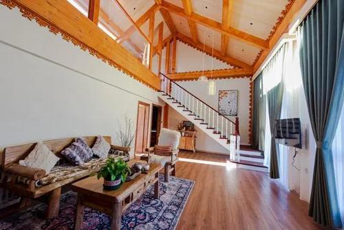 度假區(qū)內(nèi)的民宿以原木風(fēng)格為主,大量運(yùn)用自然材質(zhì)裝飾。房間內(nèi)的原木家具與落地窗相得益彰,陽光透過玻璃灑落在木質(zhì)地板上,營(yíng)造出溫暖舒適的氛圍。房間配備的觀景露臺(tái)或庭院,讓住客能充分感受林海雪原的壯美景色。