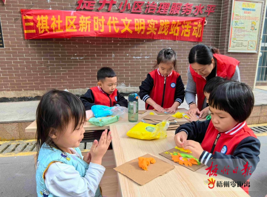 11月30日,在歌利亞莊園小區(qū)舉行的“我愛我家 文明你我”新時代文明實踐活動中,小朋友在老師的指導(dǎo)下學習用輕黏土制作門牌。梧州日報記者 朱元冬 攝