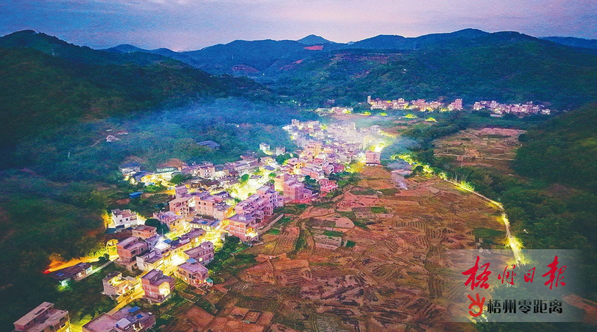 夜幕初垂,藤縣埌南鎮雙底村村道燈火通明(攝于11月28日)。 去年以來,藤縣埌南鎮政府、駐村工作隊和雙底村“兩委”通過各種渠道申請建設鄉村路燈超200盞,為村民辦實事辦好事,改善鄉村基礎設施。梧州日報記者 陳業漾 攝