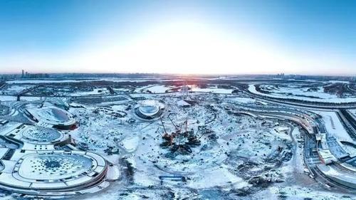 這是12月1日無人機拍攝的哈爾濱冰雪大世界建設現場。 新華社記者 張啟明 攝