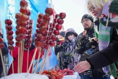 火熱的采冰活動不僅“燃動”松花江面,也成為游客享受冰上運動與特色美食的熱門“打卡地”。江水煮餃子、江水燉江魚、美味凍貨冰雪宴讓中外游客樂在其中。結合了冰雪特色的文旅體驗活動和文創產品也為采冰節增添了時尚元素。