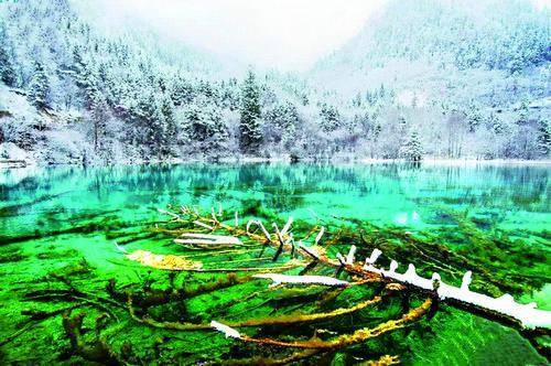 冬日的九寨溝,冰雪化為魔法撒滿每一個角落。(資料圖)