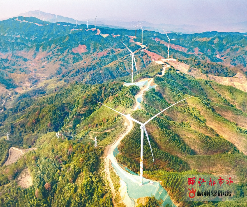 12月20日,藤縣東榮鎮坡頭村一帶,山坡上的風力發電機一排排旋轉著。 近年來,梧州市利用高山資源、閑置土地資源,不斷發展新能源產業,在岑溪市、藤縣、蒼梧縣等地,大力發展光伏發電產業、風力發電產業,輸送清潔綠色能源。