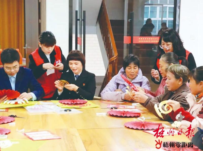 2024年12月26日,龍圩區龍圩鎮鳳嶺社區組織居民歡聚一堂,共同制作手工團扇。現場溫馨和諧,其樂融融。陳炳榮 黃瑩露 攝