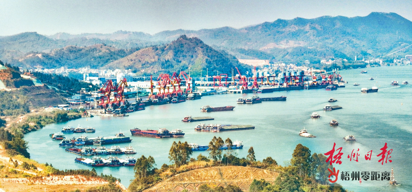 1月11日,在赤水港作業區,船舶貨物裝卸一派繁忙。 據梧州海事局消息,2024年梧州港港口貨物吞吐量突破1億噸,達1.09億噸,同比增長36.18%;集裝箱吞吐量突破100萬標準箱,達105萬標準箱,同比增長4.85%。梧州日報記者 何鎏 攝